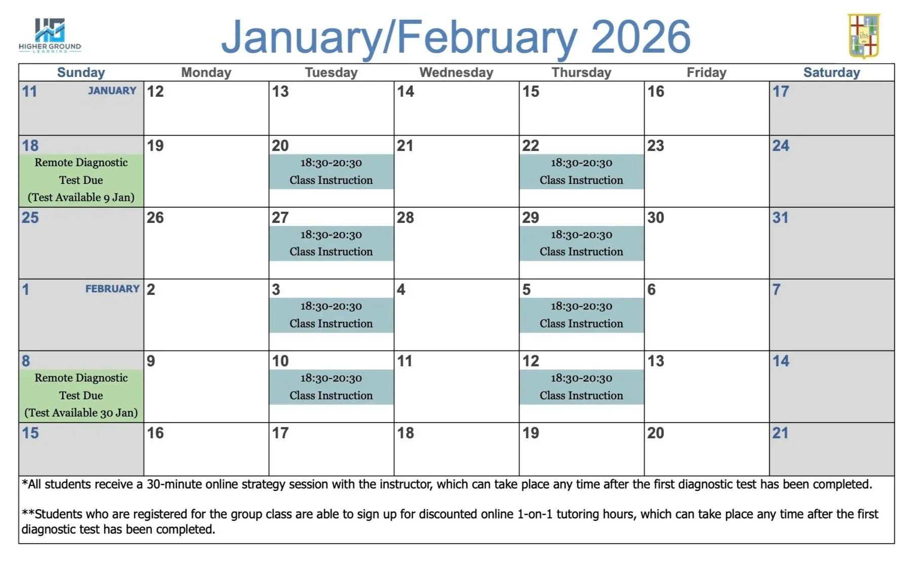 All students have the opportunity to schedule a free 30-minute individual strategy session with a Higher Ground Learning instructor. These sessions are perfect to use to understand their diagnostic score reports, identify strengths and weaknesses, and form an individualized strategy to maximize SAT success.