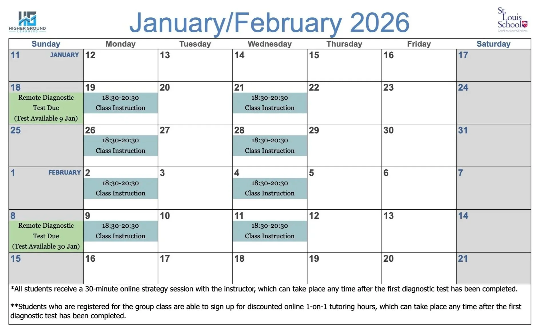 All students have the opportunity to schedule a free 30-minute individual strategy session with a Higher Ground Learning instructor. These sessions are perfect to use to understand their diagnostic score reports, identify strengths and weaknesses, and form an individualized strategy to maximize SAT success.